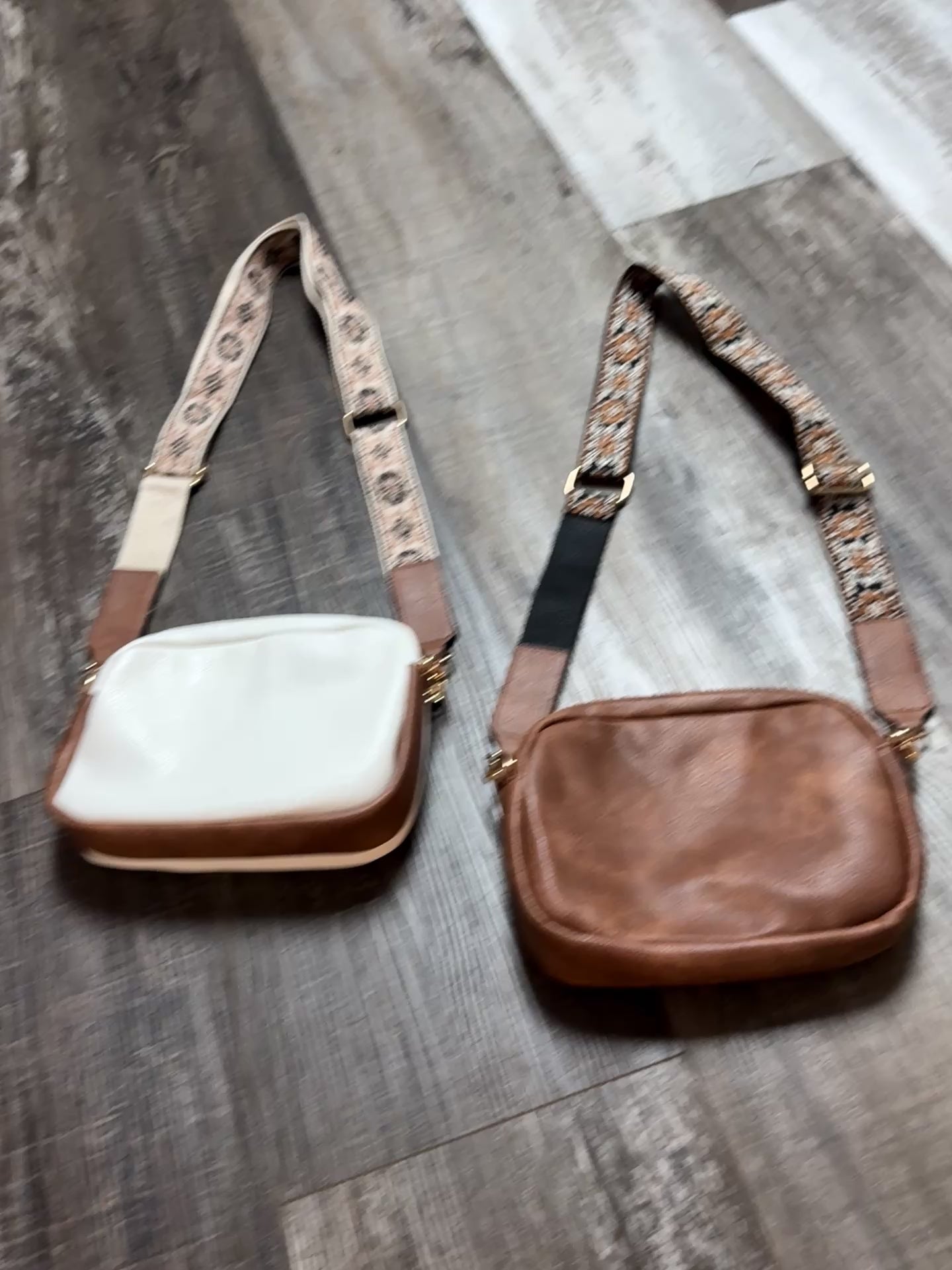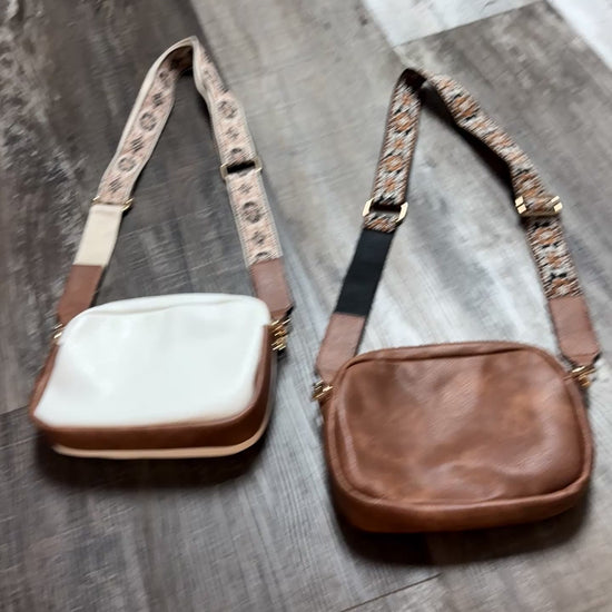 Two new super cute sports theme cross body bags. White bag with red baseball stitching and a red removable and adjustable strap. Brown bag with white football stitch with a black removable and adjustable strap.