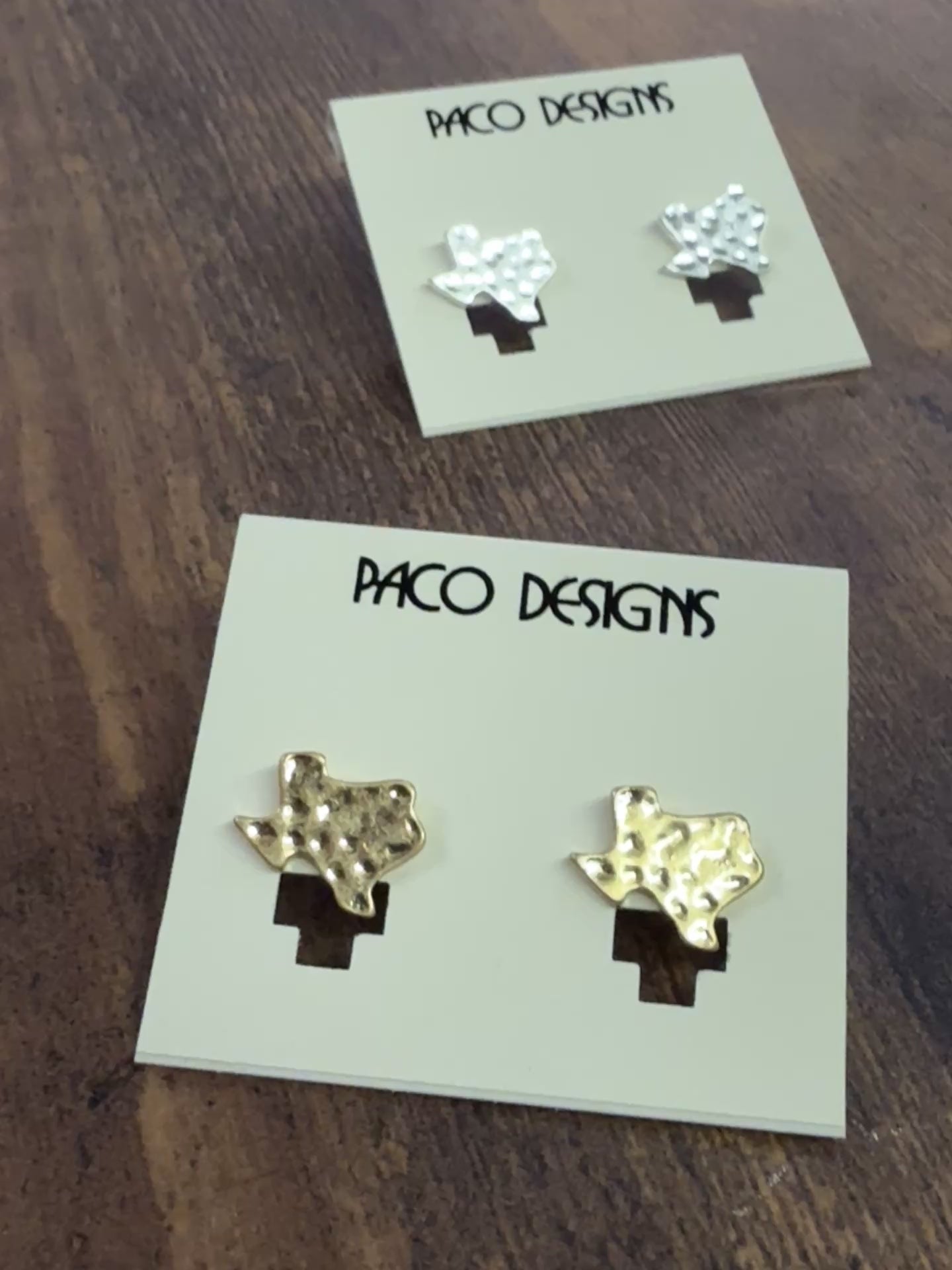 Adorable small silver hammered Texas outline earrings
